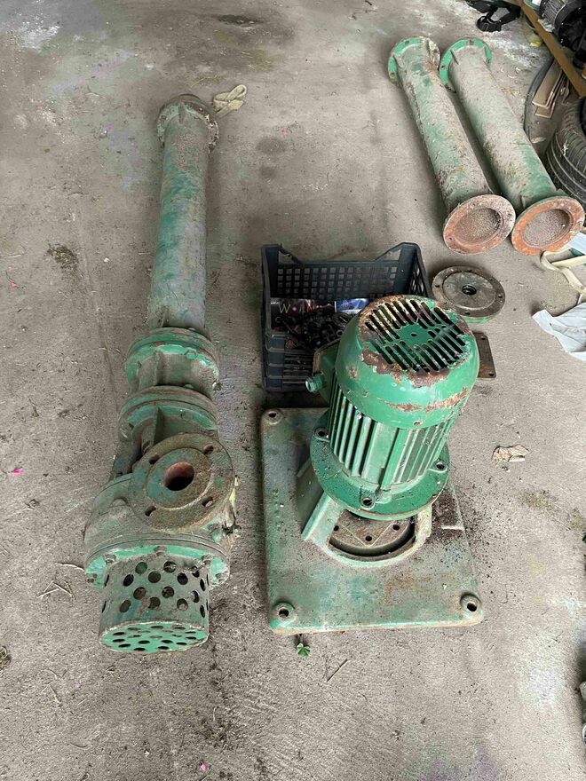 Używana pompa segmentowa w kolorze zielonym. Kupiona do zbiornika (szamba) nigdy nie była używana -projekt upadł. Kupiona okazjonalnie - rozebrana do transportu(Całośc miała ponad 4m )Dodatkowo posiadam silnik napędowy 2,2kW z podstawą do zamontowania na zbiorniku , 2 segmenty przedłużające do 4m. Komplet 200 zł. Odbiór osobisty w Świniarach Starych Gm. Łoniów.